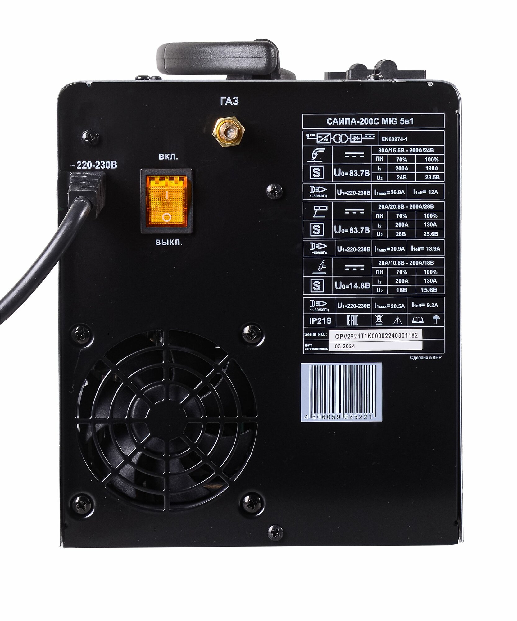 Сварочный полуавтомат Ресанта САИПА-200C 4 в 1 (ММА, MIG, MAG, FLUX, 200 А, ПВ - 70%) информация: