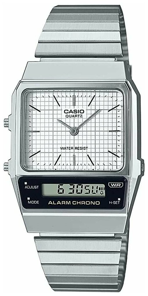 AQ-800E-7A2 Casio наручные часы кварцевые WR30 (3 атм) мужские, женские белый, серебряный, хром секундомер будильник отображение числа, второй часовой пояс, отображение дня недели, отображение месяца акриловое стекло 7 799 ₽