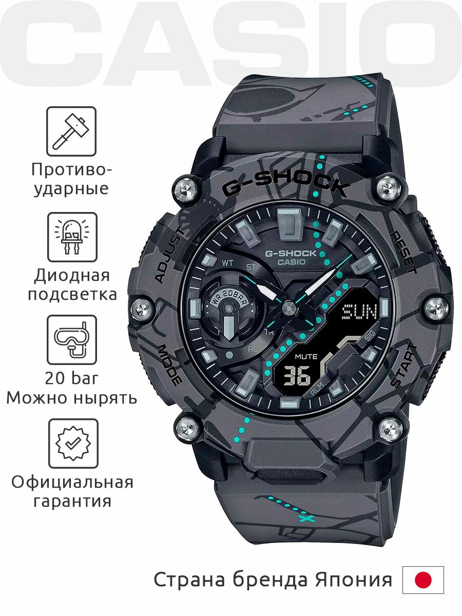 Наручные часы CASIO G-Shock GA-2200M-1AER мужские, кварцевые, будильник, секундомер, таймер обратного отсчета, водонепроницаемые, противоударные, подсветка дисплея, черный, серый