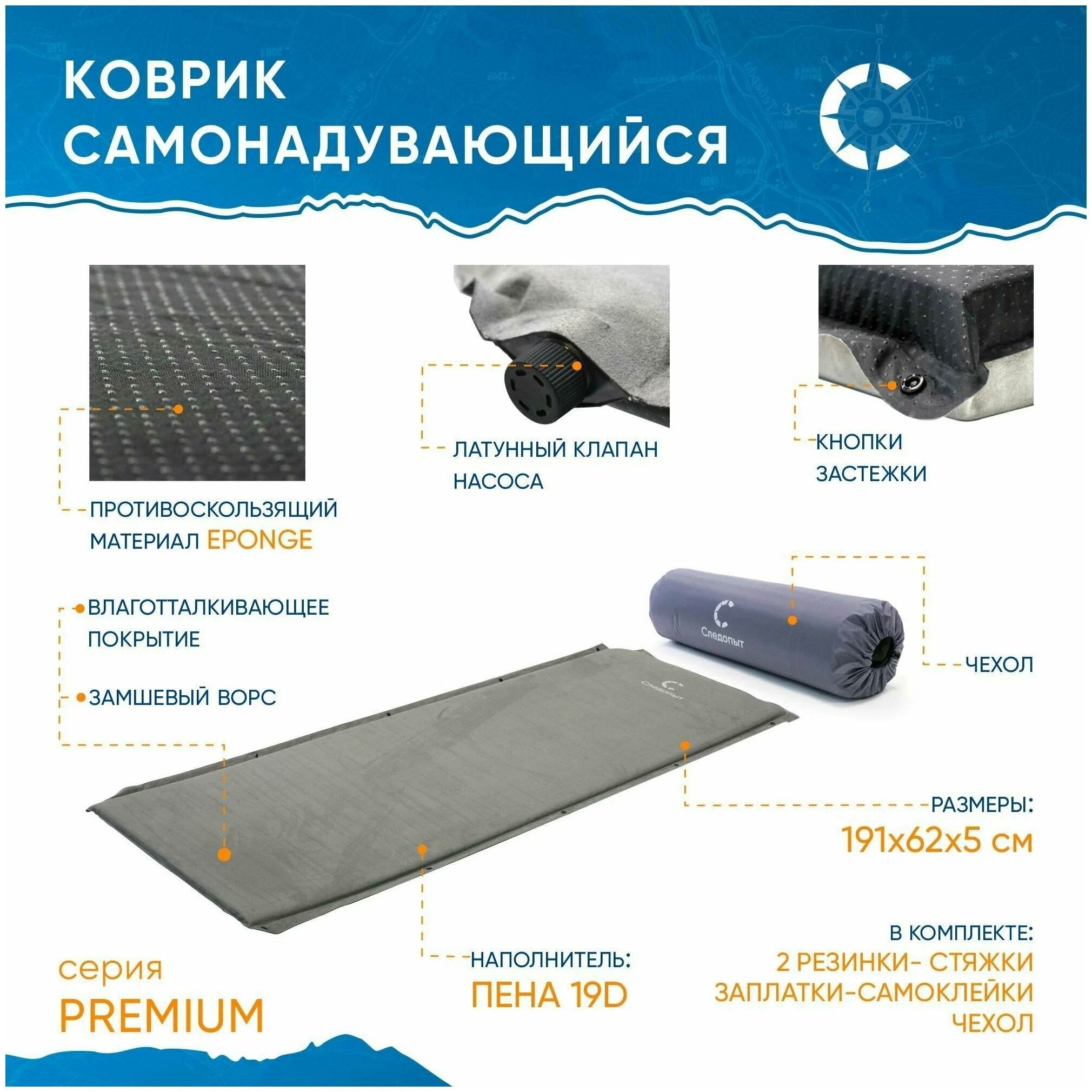 Самонадувающийся коврик туристический "Следопыт" PF-KS-04 Premium 191x62x5 cм , Походный матрас кемпинговый, Коврик в палатку самонадувной