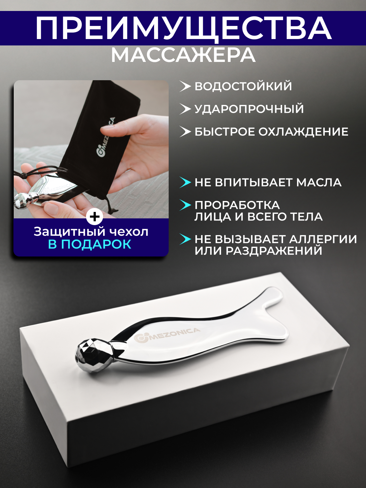 Массажер 2 в 1 роликовый Mezonica, скребок гуаша металлический, для массажа лица, кожи вокруг глаз, декольте информация: