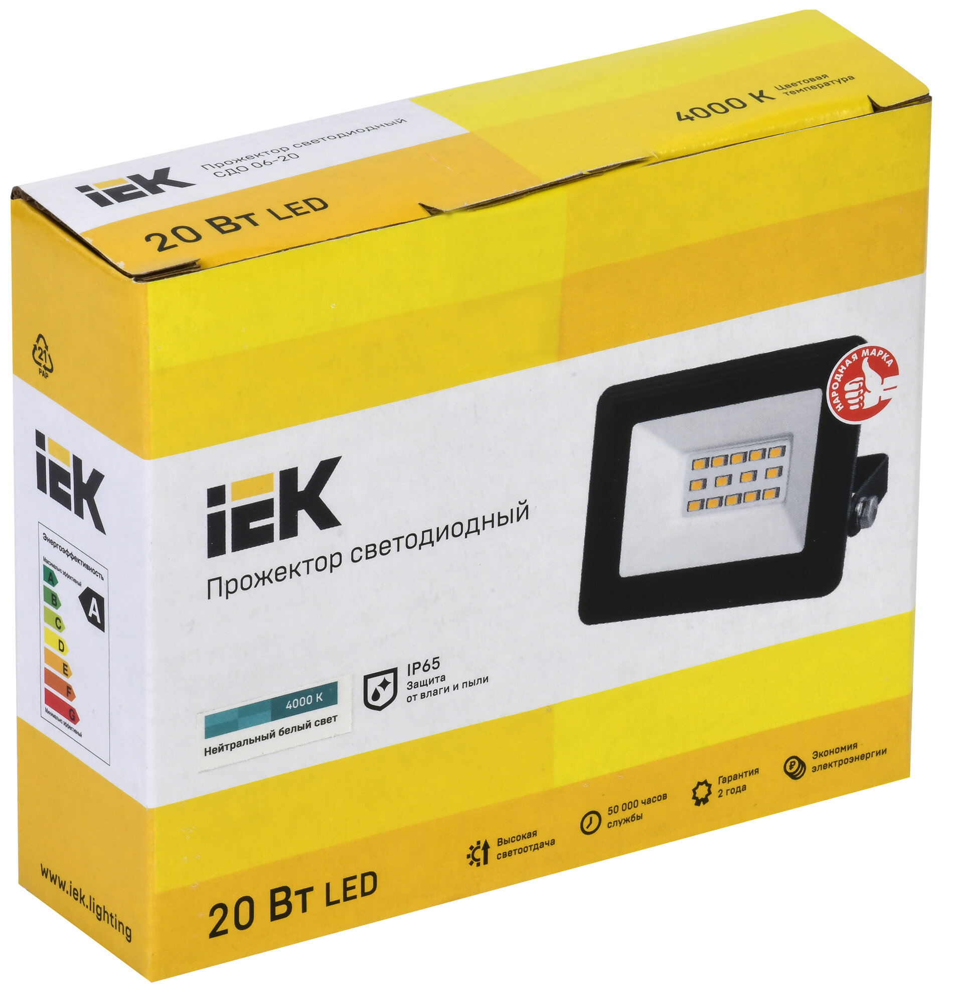 Прожектор СДО 06-20 светодиодный черный IP65 4000 K IEK информация: