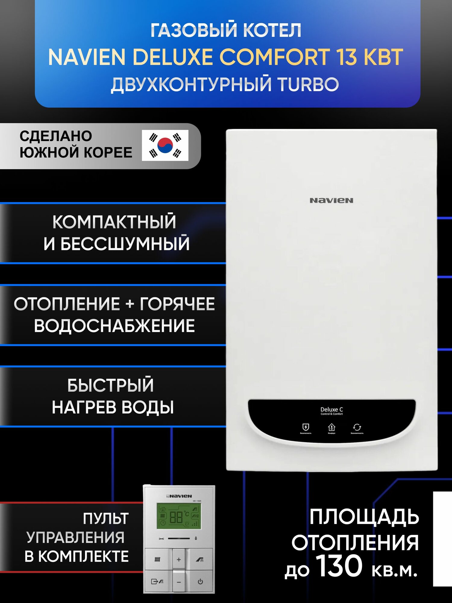 Газовый котел Navien Deluxe Comfort 13 кВт двухконтурный TURBO до 130м.кв. информация: