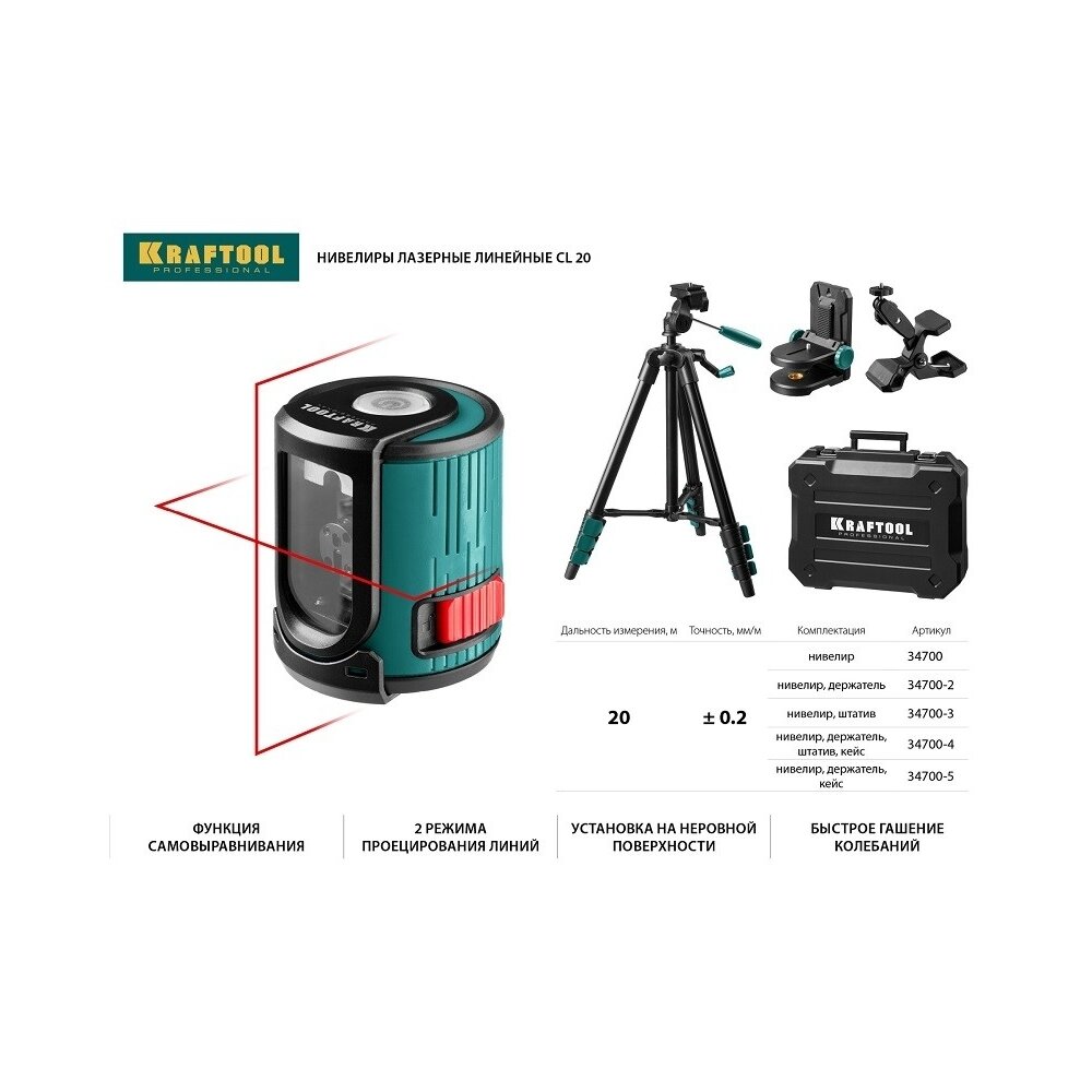 KRAFTOOL линейный лазерный нивелир CL-20 34700 Professional информация: