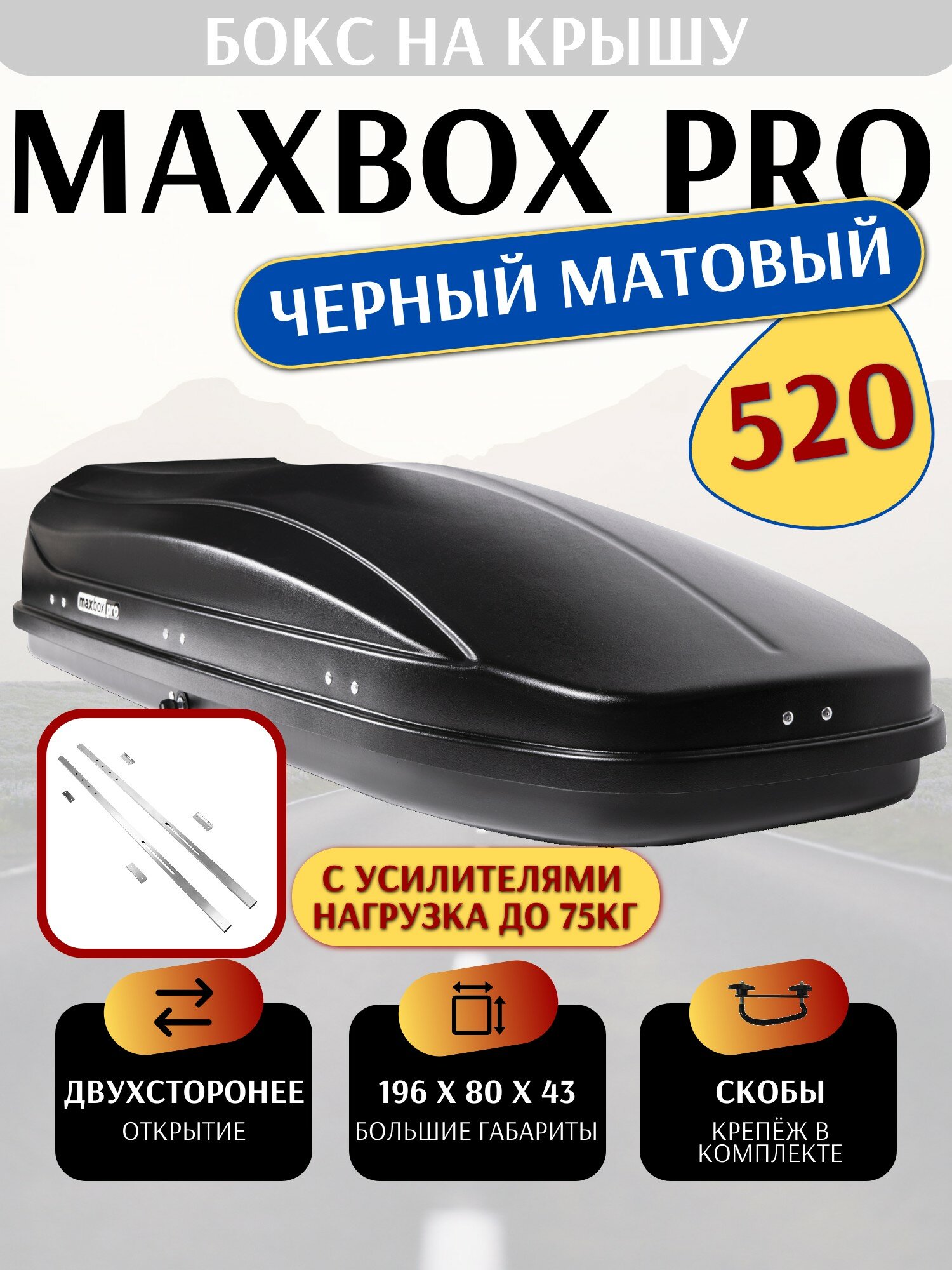 Бокс на крышу MaxBox Pro 520л, черный матовый,196х80х43, усилители дна, двусторонний, а:MBP-520-B-1