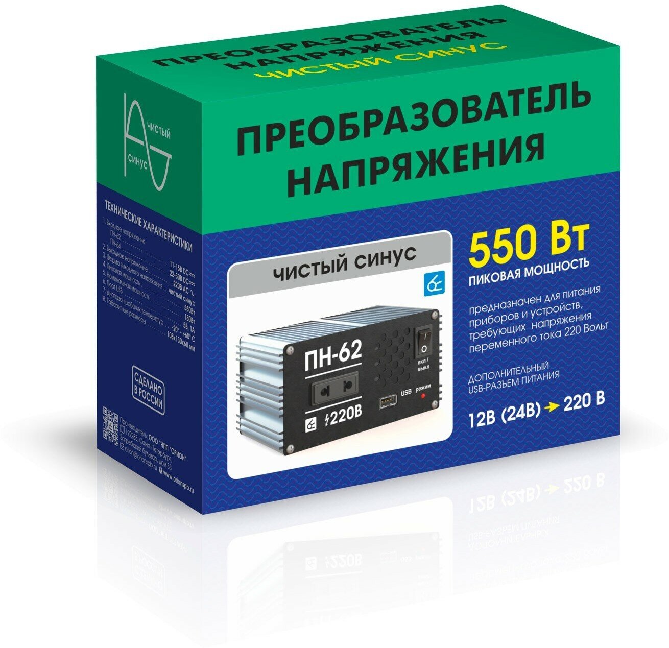 Нпп-орион 5240 Преобразователь напряжения 12В/220В 550Вт Вымпел ПН-62