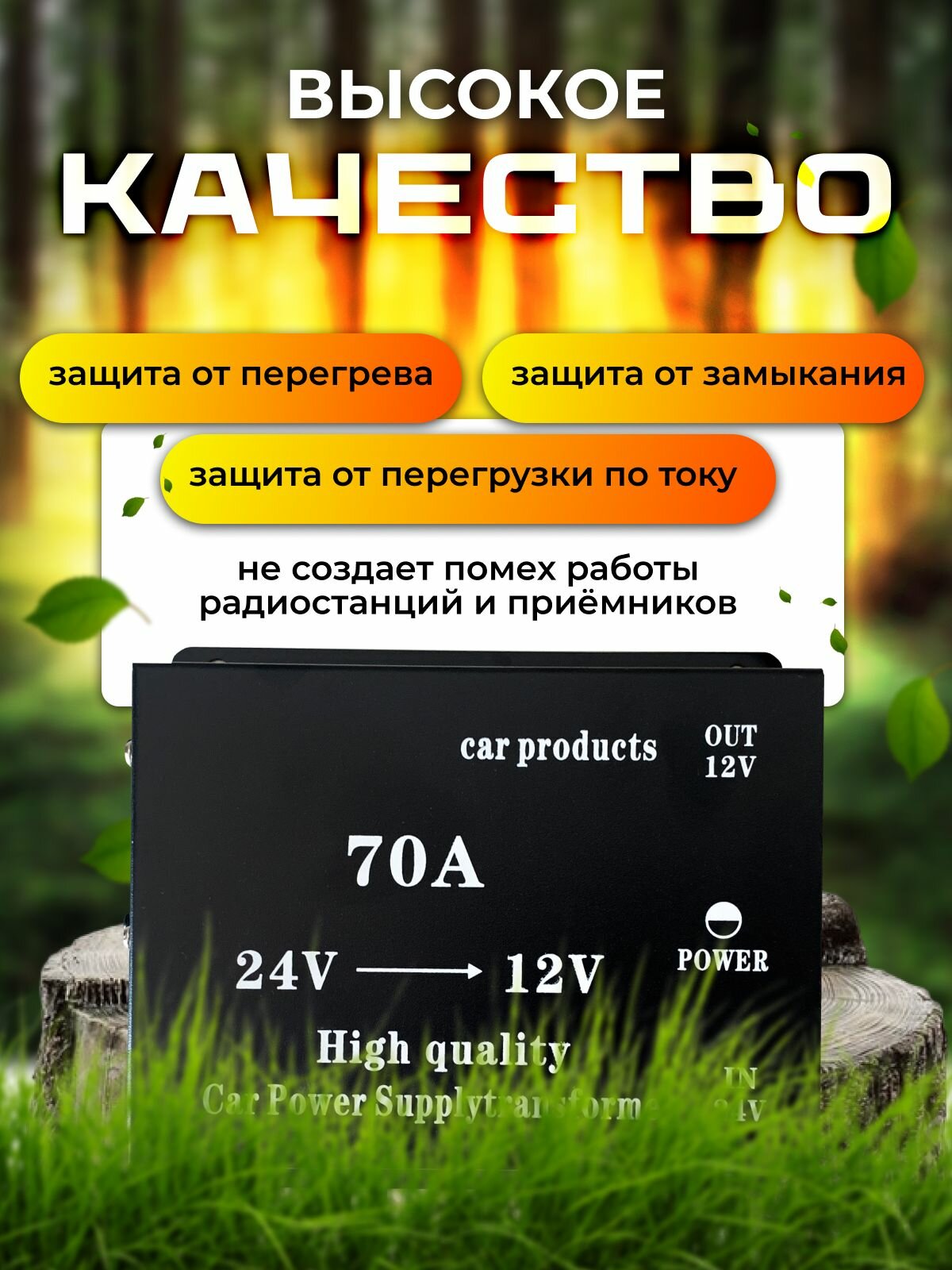 Автомобильный инвертор с 24V на 12V (70A-840W) информация: