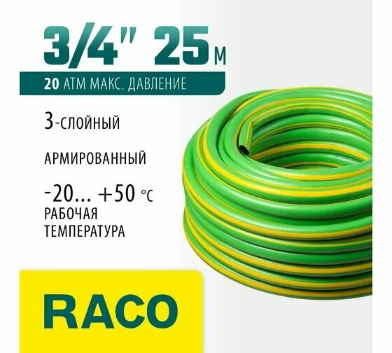 RACO CLASSIC 3/4", 25 м, 20 атм, трёхслойный поливочный шланг, армированный