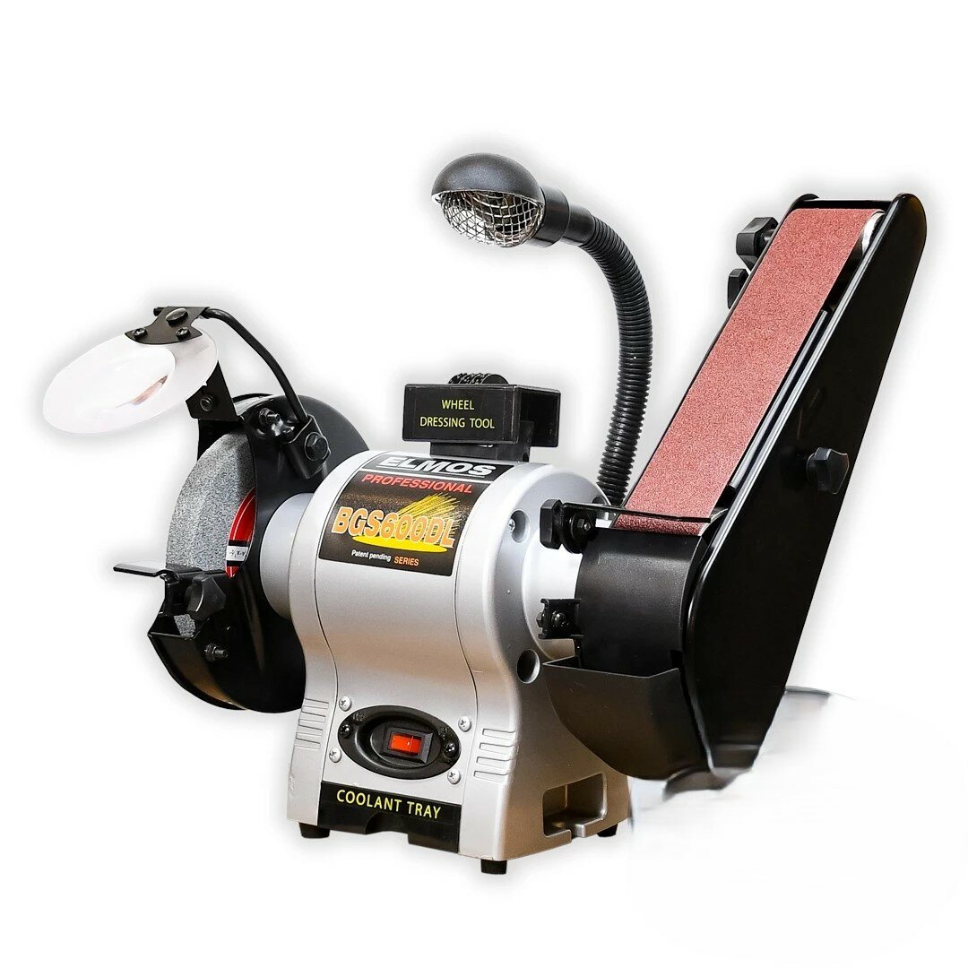 Отзывы на Точильный станок с шлифовальной лентой Elmos BGS 600DL 450 Вт. Круг 150 мм. Лента 686*50 мм. Лампа