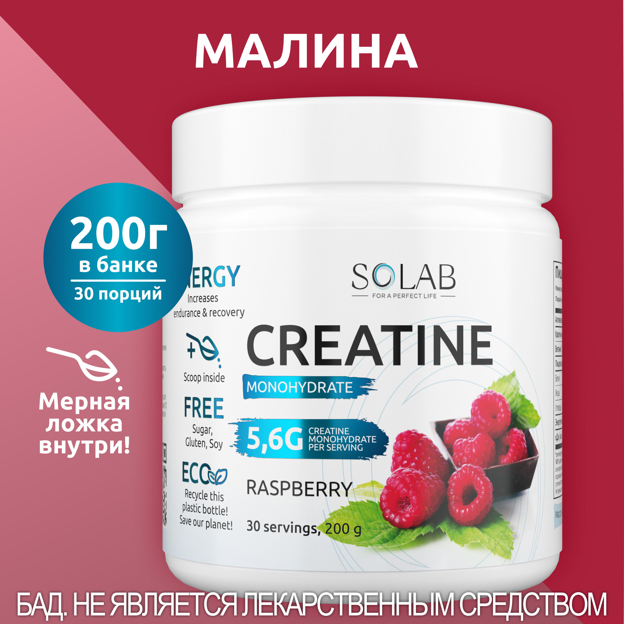 SOLAB Креатин моногидрат порошок 30 порций, Creatine Monohydrate, вкус малина, 200 гр спортивное питание 725 ₽