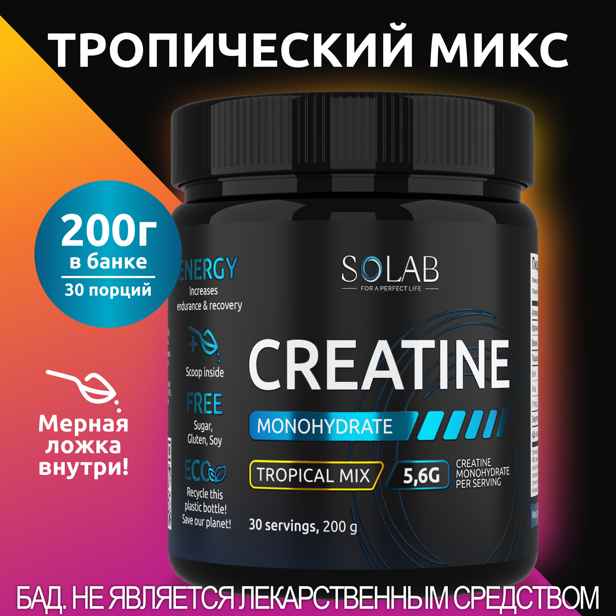 SOLAB Креатин моногидрат порошок 30 порций, Creatine Monohydrate, вкус тропик, 200 гр спортивное питание 854 ₽