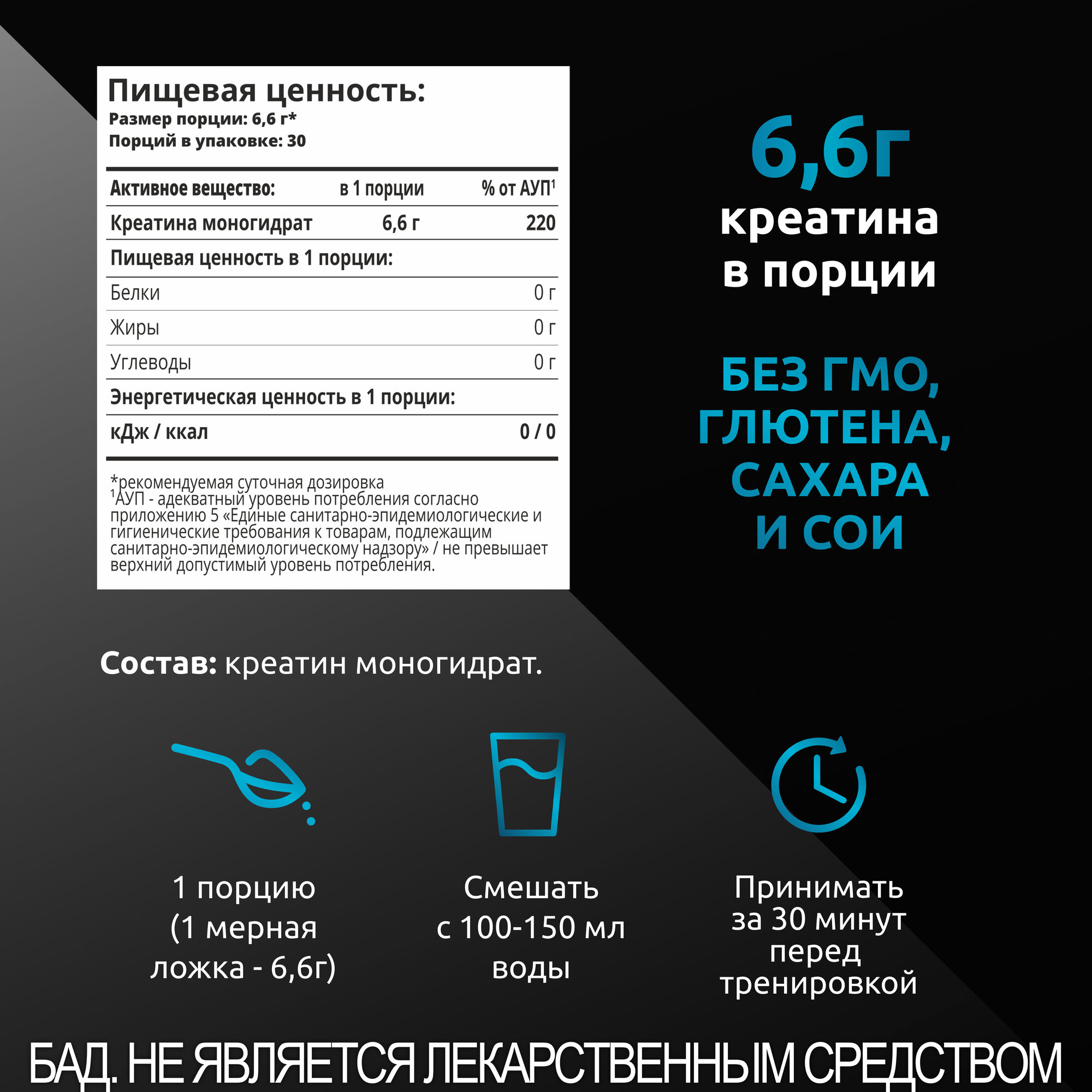 Креатин моногидрат порошок 30 порций, вкус Нейтральный, 200 гр спортивное питание информация: