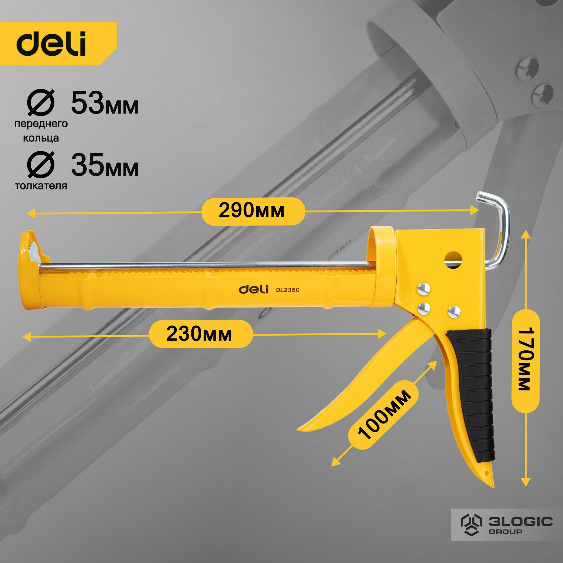 Пистолет для герметика полузакрытый Deli DL2350 (290мм, для туб 310мл) информация: