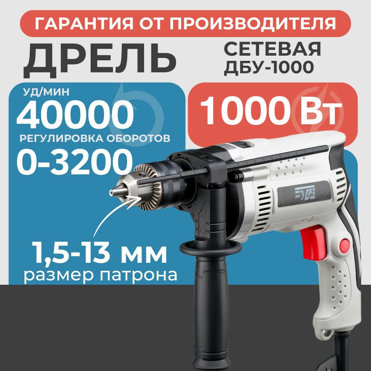 10 цен на ДБУ 1000 Дрель ударная 1000Вт, 0-3200об/мин, 13,16,25мм булат