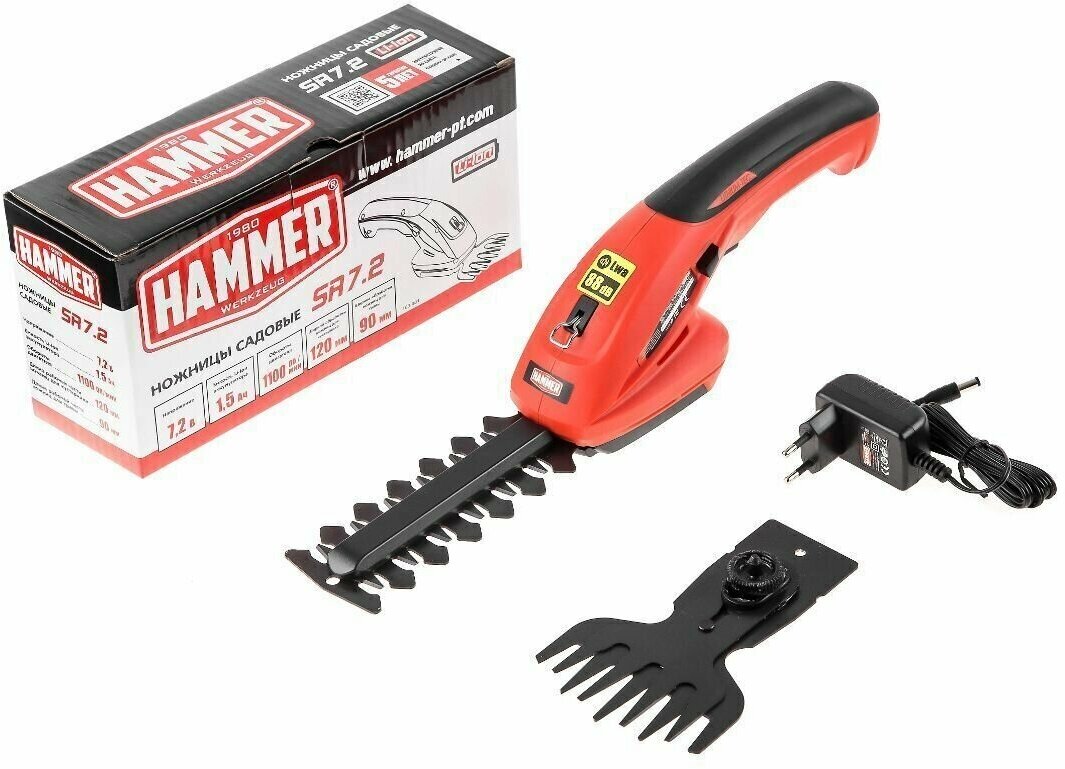 Аккум. ножницы Hammer SR7.2 7.2ВLi-Ion нож для веток 120/8мм, нож для травы 90мм 103-001