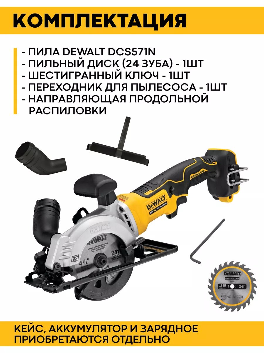 Отзывы на Пила циркулярная DEWALT DCS571N, 20 В, 115 мм, 4500 об/мин, без АКБ и ЗУ