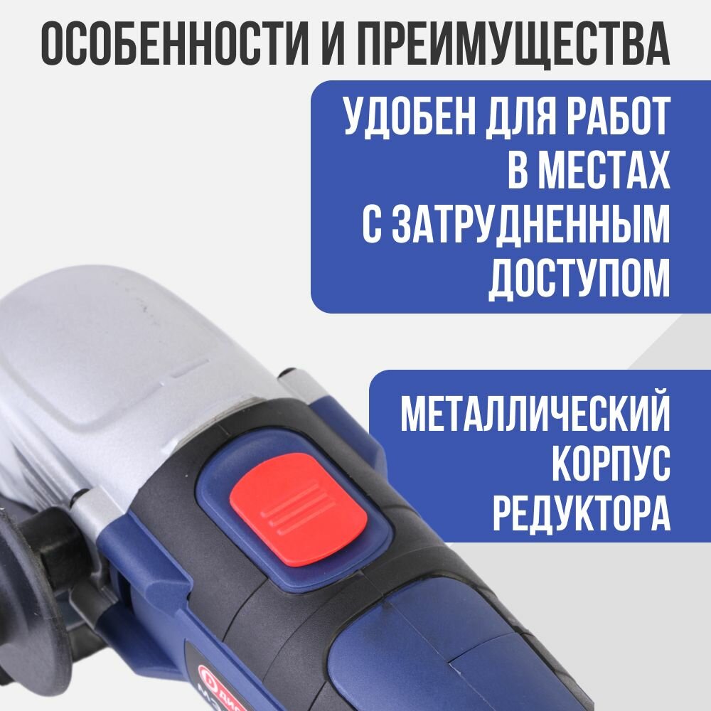| Особенности конструкции | фиксация шпинделя, блокировка кнопки включения, дополнительная рукоятка |