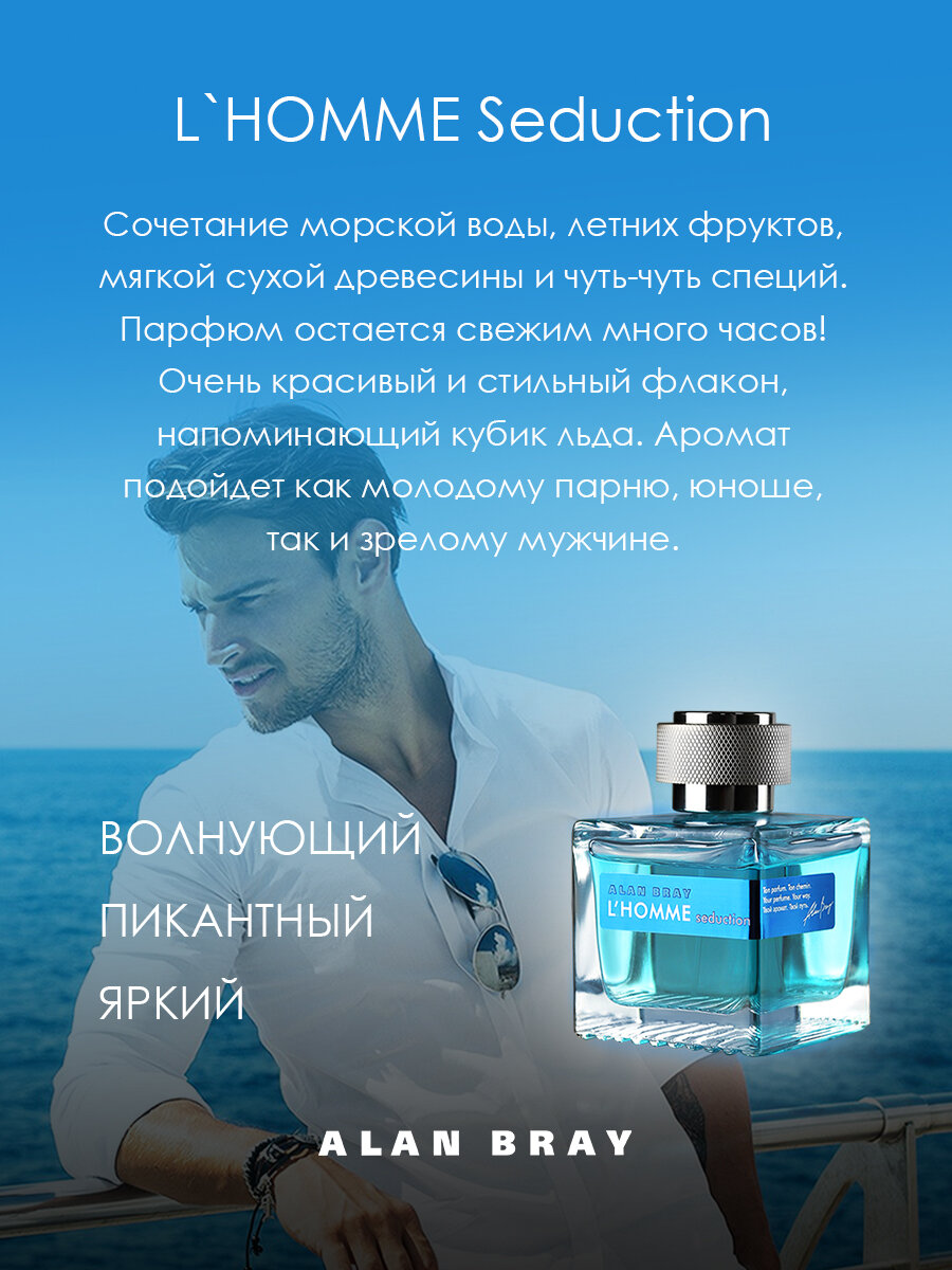 10 цен на Alan Bray L HOMME Seduction, косметика мужская, парфюм мужской, духи мужские, древесный, цитрусовый, свежий