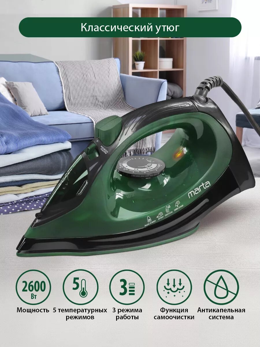 Утюг Marta, с тефлоновым покрытием, отпаривание, мощность 2600 Вт 1 258 ₽