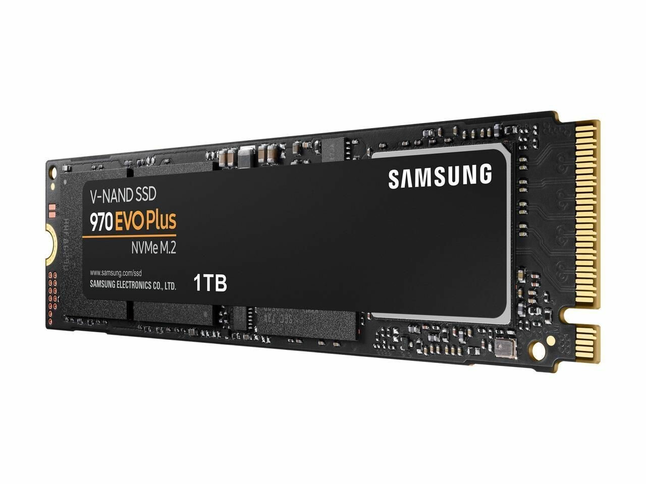 Твердотельный накопитель SSD Samsung M.2 2280 1TB 970 EVO Plus Client SSD PCIe Gen3x4 with NVMe, 3500/3300, IOPS 600/550K, MTBF 1.5M, 3D NAND TLC, 1024MB, 600TBW, NVMe 1.3, RTL информация: