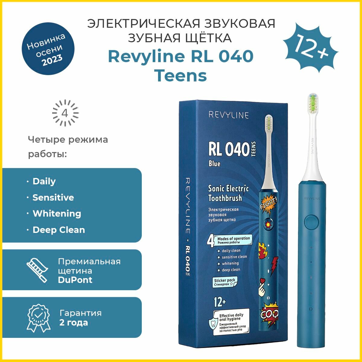 Электрическая зубная щётка Revyline RL 040 Teens голубая информация: