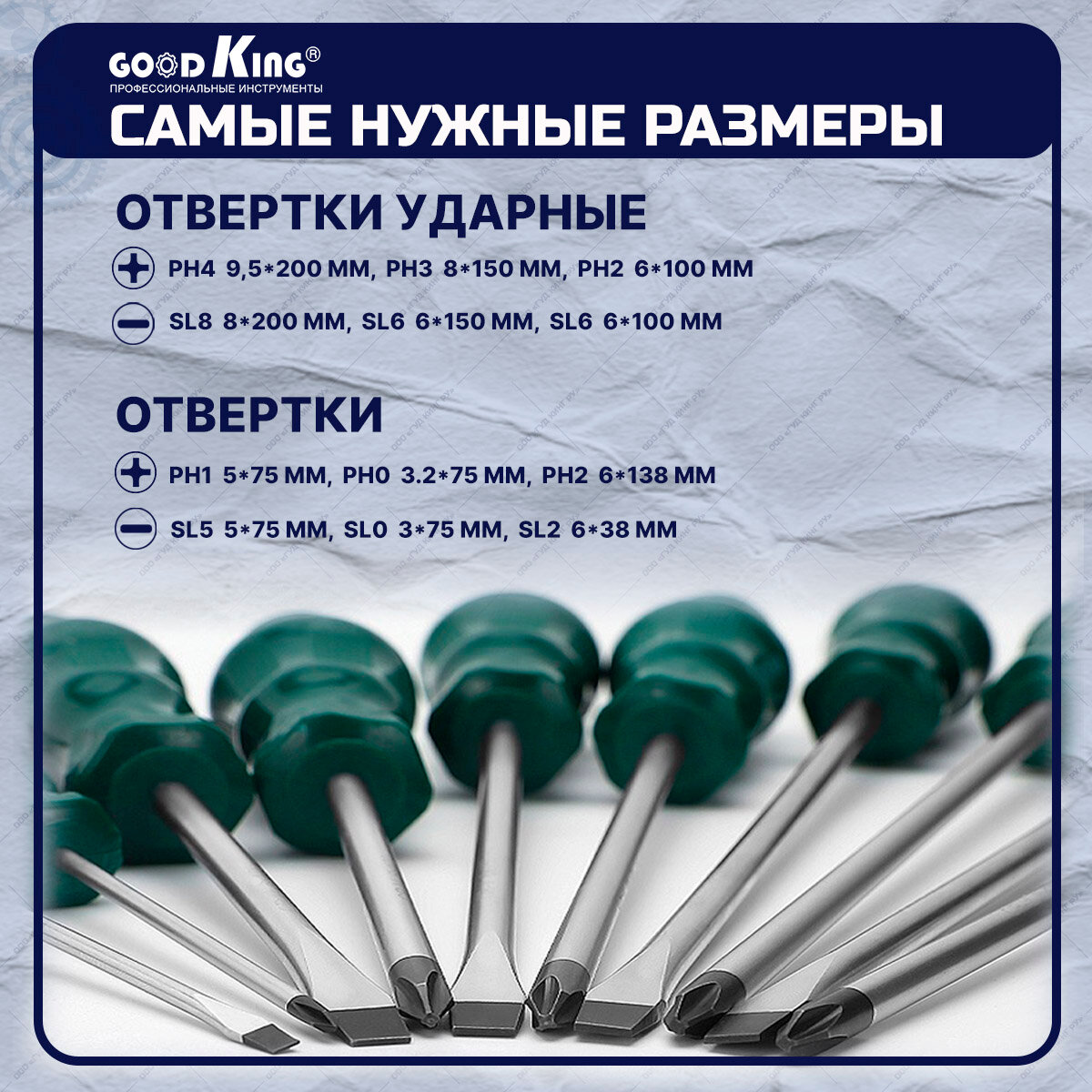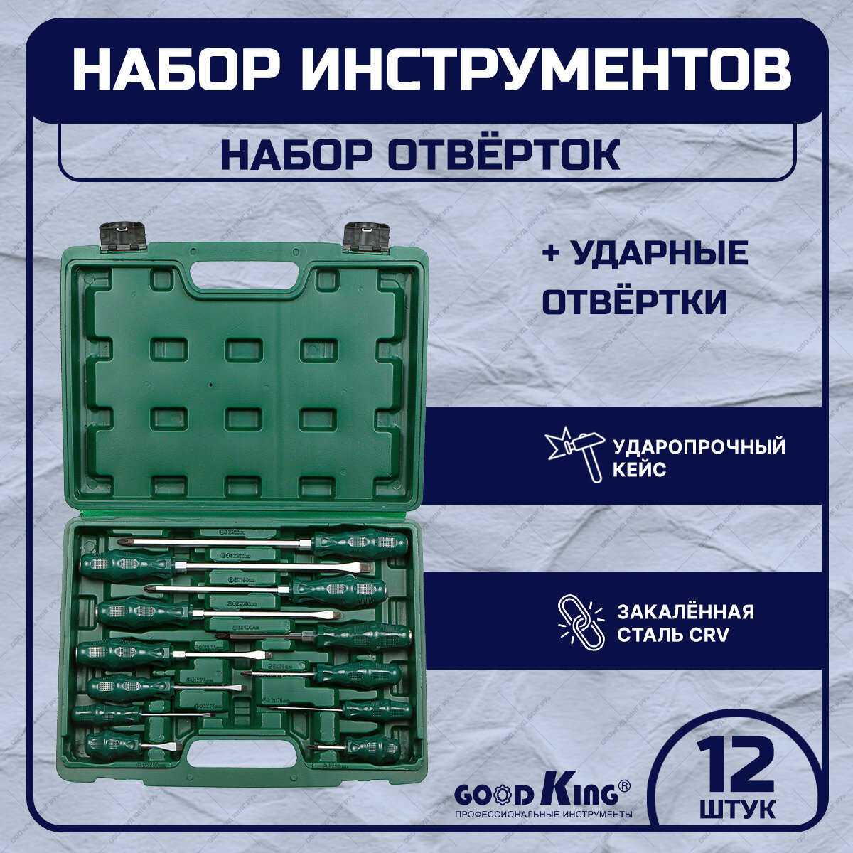 Набор ударных отверток GOODKING, 12 предметов (OG-10012) информация: