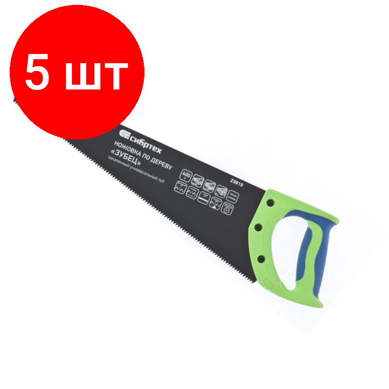 Комплект 5 штук, Ножовка по дереву 400 мм 7-8 TPI зуб 2D каленый зуб Сибртех Зубец 23810 информация:
