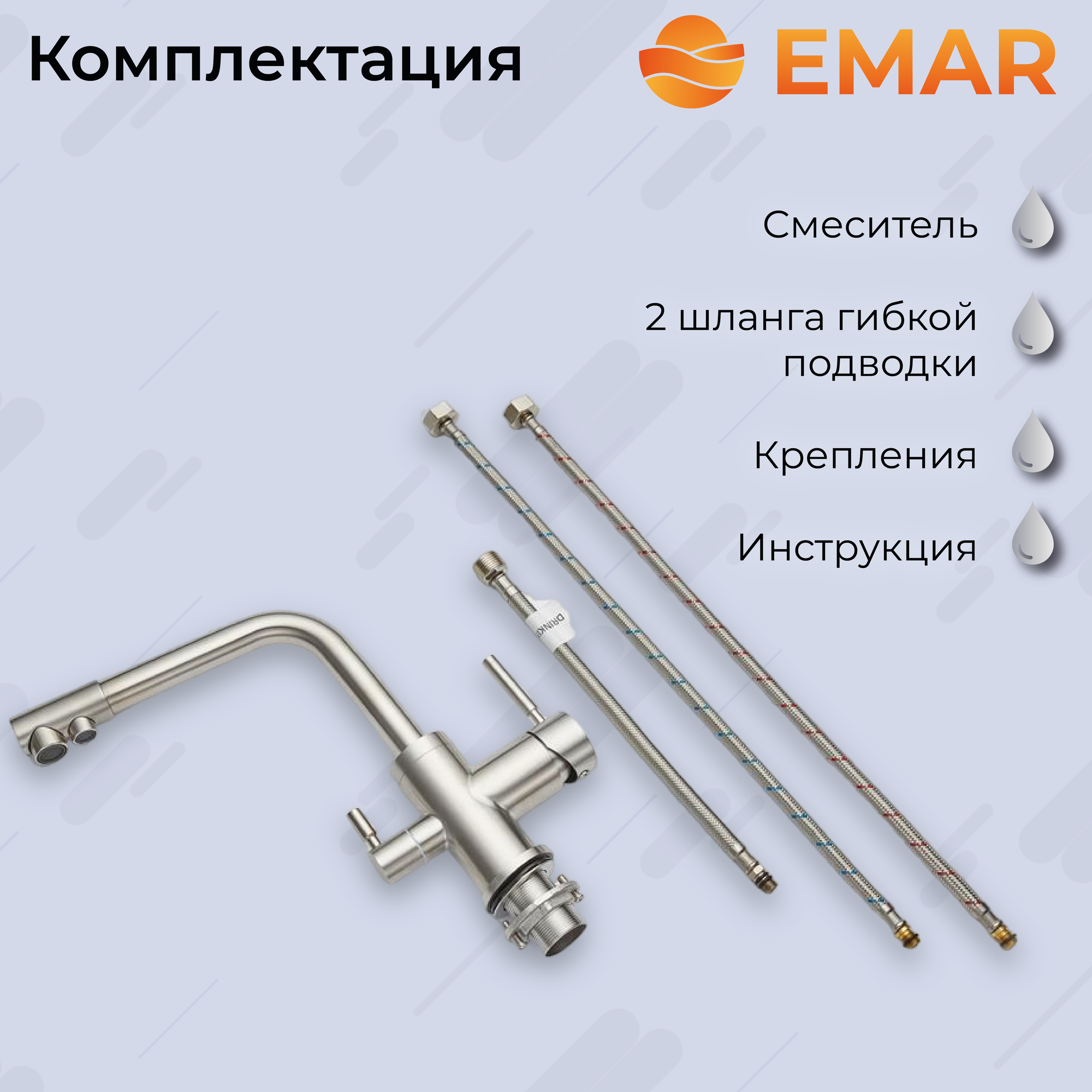 Смеситель для кухни EMAR EC-3003NS, с подключением к фильтру для питьевой воды, цвет сатин / для кухонной мойки / раковины