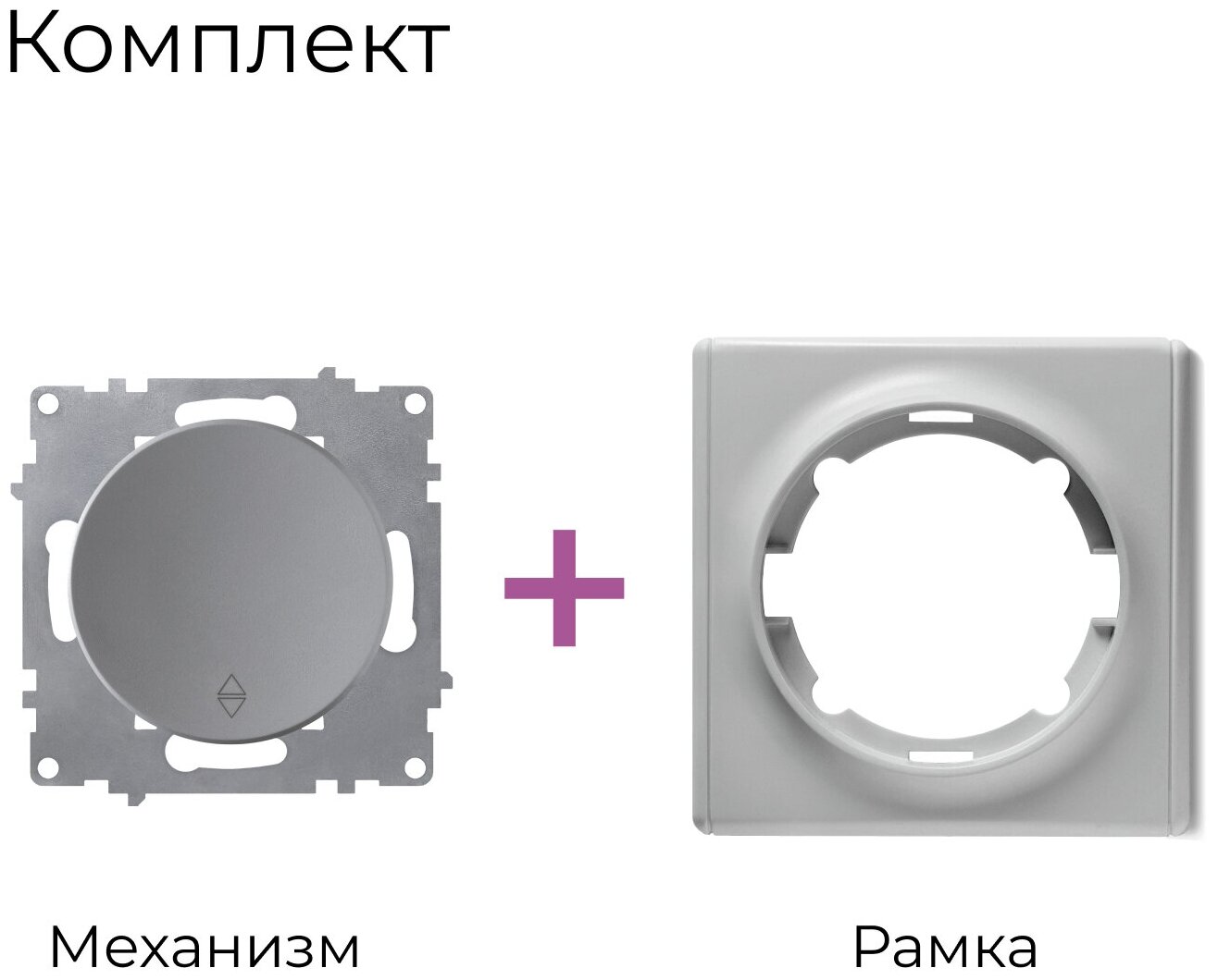 Комплект OneKeyElectro. Переключатель (проходной) одноклавишный (1 шт.); рамка (1 шт.), цвет серый информация: