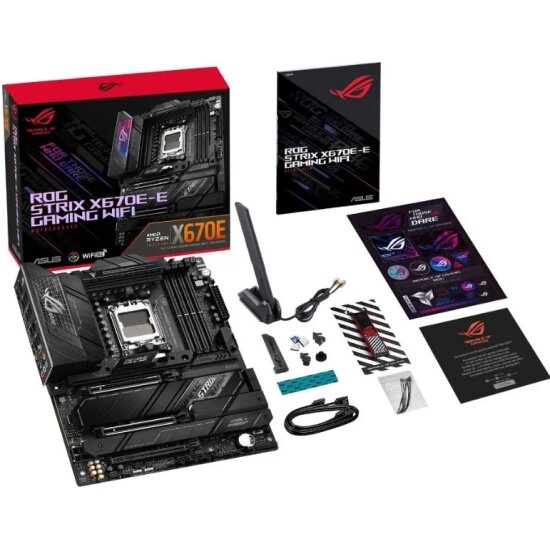 Материнская плата ASUS ROG STRIX X670E-E GAMING WIFI, Socket AM5, X670, 4*DDR5, HDMI+DP, 4SATA3 + RAID, M2, Audio, Gb LAN, USB 3.2, USB 2.0, ATX; 90MB1BR0-M0EAY0 (ROG STRIX X670E-E GAMING WIFI)