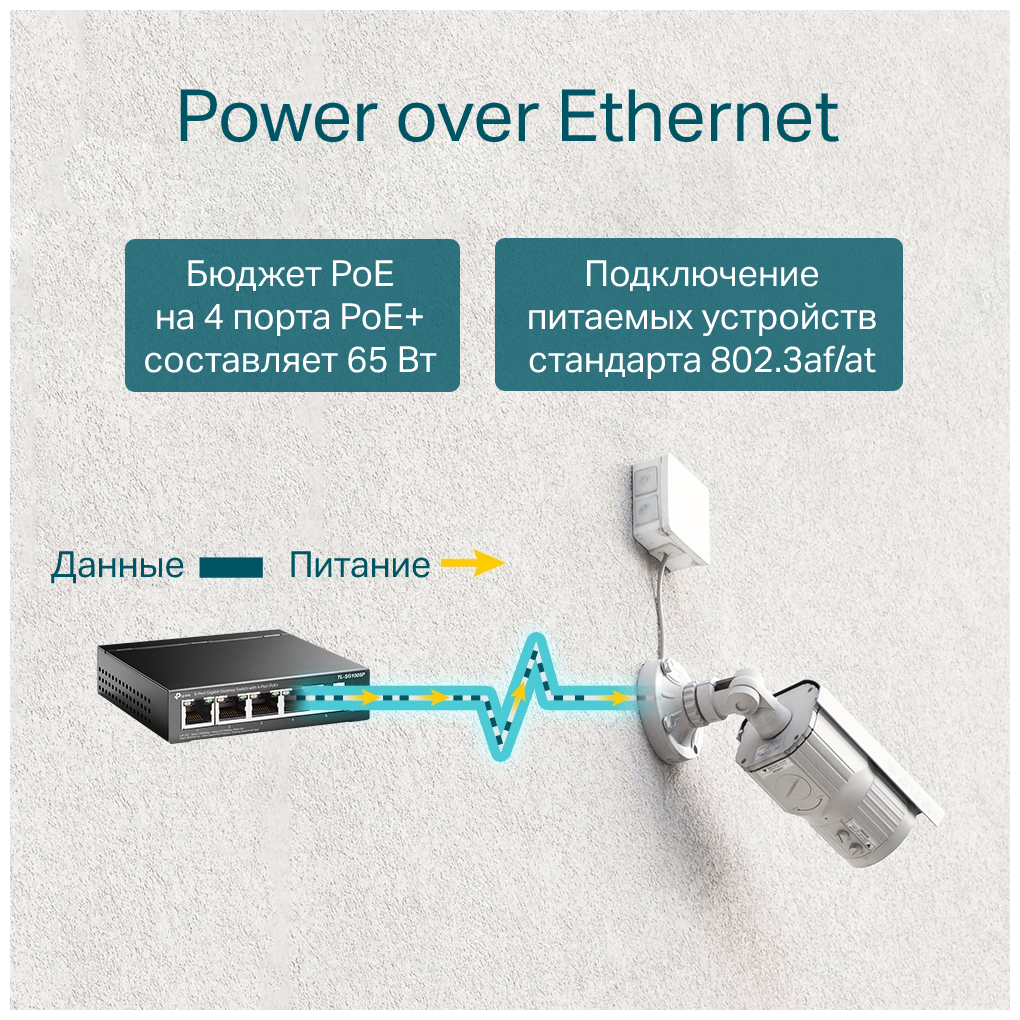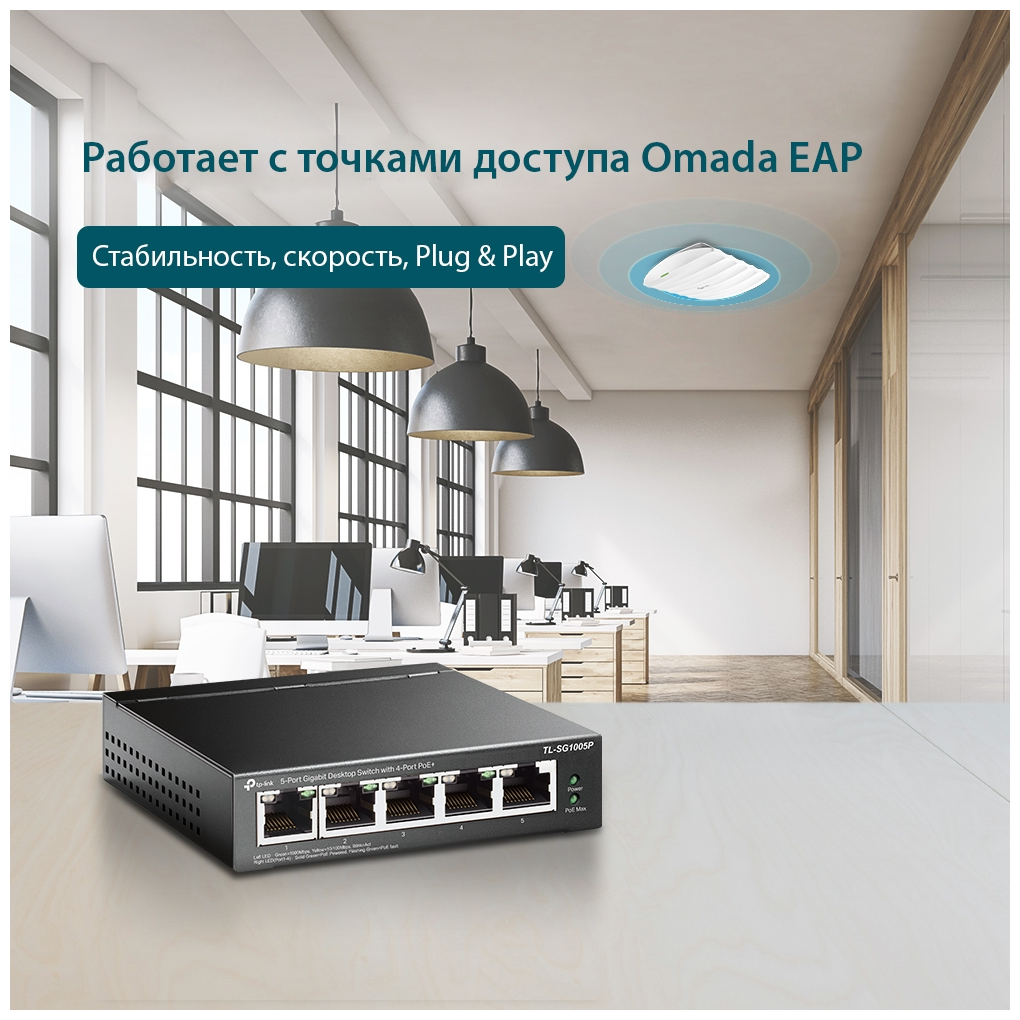 Коммутатор TP-LINK TL-SG1005P 5-портовый гигабитный настольный коммутатор с 4 портами PoE