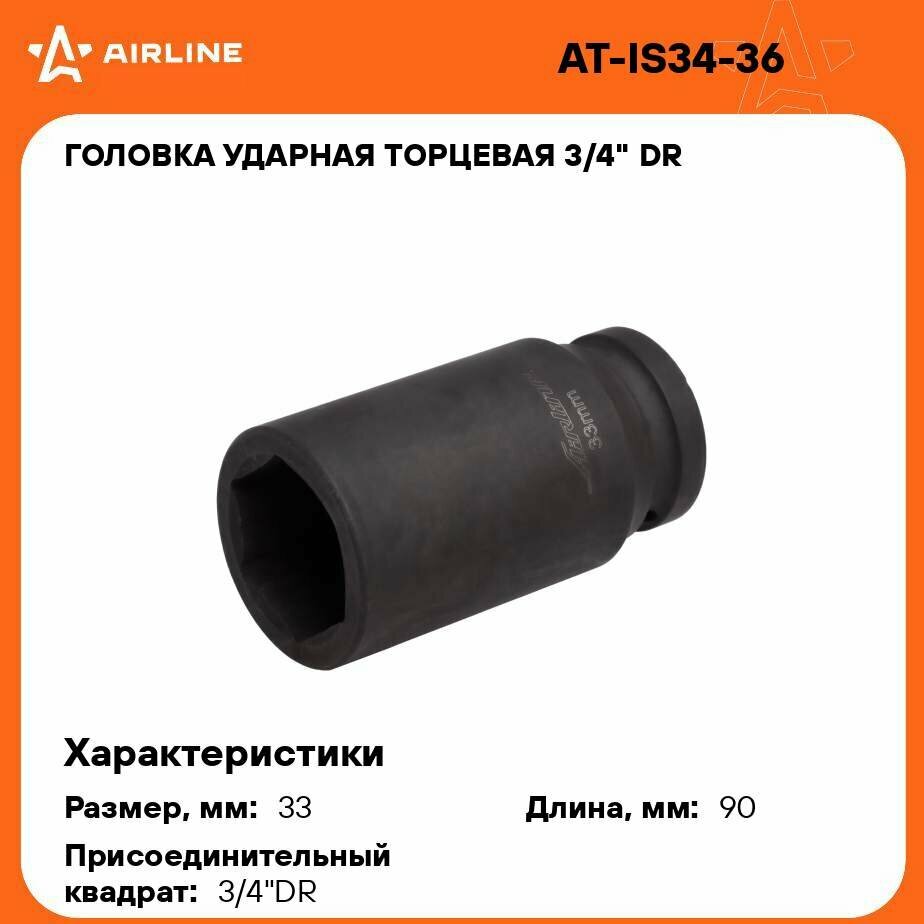 Головка Airline Ударная Торцевая 3/4" Dr Шестигранная Удлинённая 33Мм AIRLINE арт. AT-IS34-36