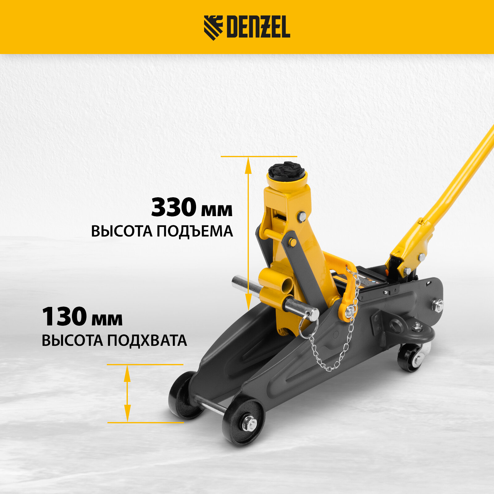 Домкрат гидравлический подкатной с фиксатором, 2 т, 130-330 мм// Denzel 6 150 ₽