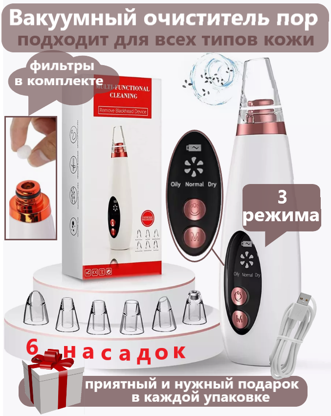 | Комплектность | 1 * вакуумный электрический очиститель для удаления угрей (основной блок) 5 * сменная всасывающая головка 1 * USB кабель |