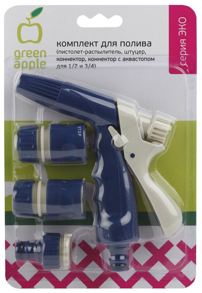 GREEN APPLE Комплект для полива, пистолет-распылитель, штуцер, коннектор Б0017786