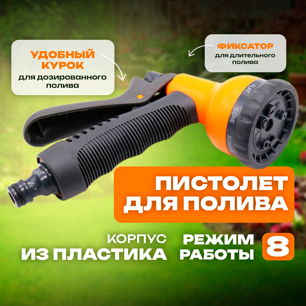Поливочный пистолет BELAMOS YM7202 (8 режимов), пистолет для полива газона, рассеиватель, лейка, насадка на шланг садовый