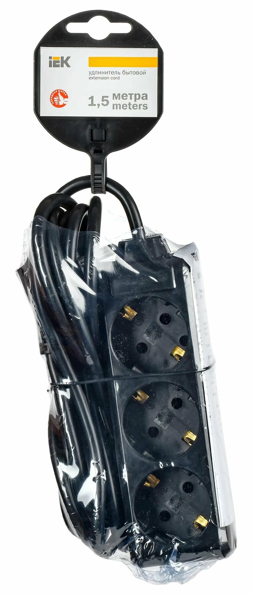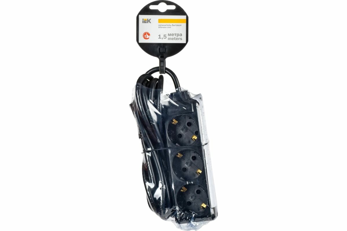 Отзывы на Удлинитель У03 3 места с заземлением 1,5м 3х1мм2 16А 250В черный IEK