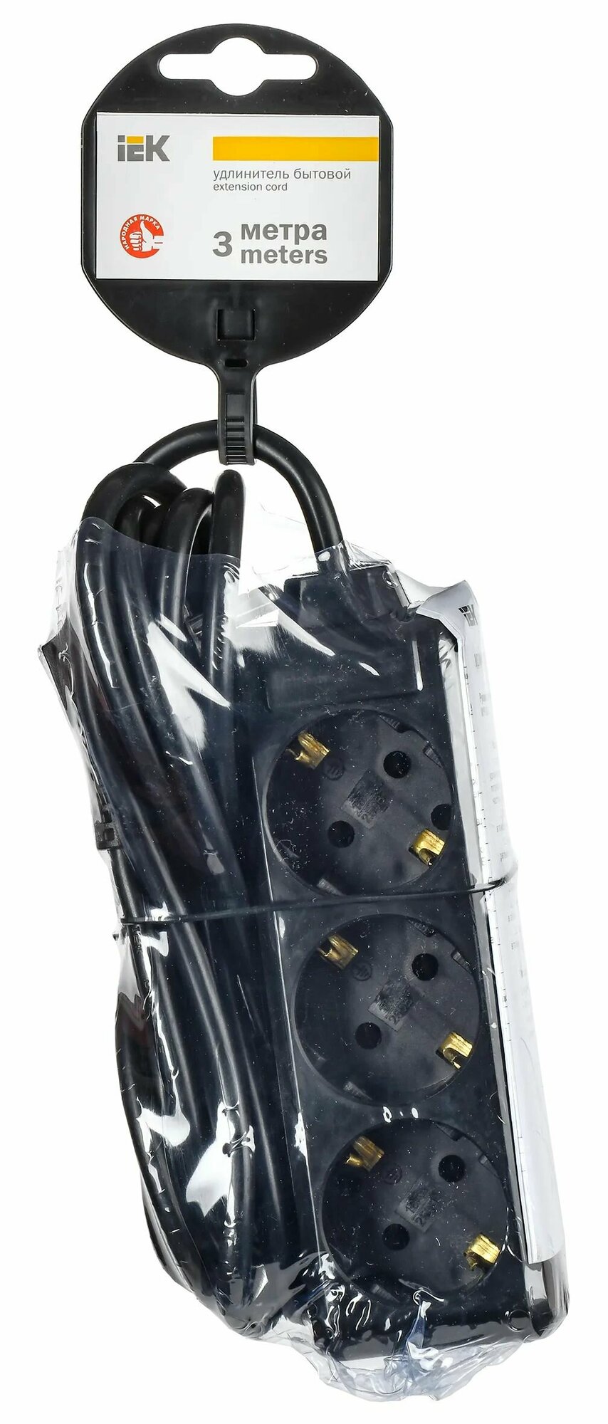 Удлинитель У03К 3 места с заземлением 3м 3х1мм2 16А 250В черный, IEK WYP10160303ZKK02 (1 шт.)