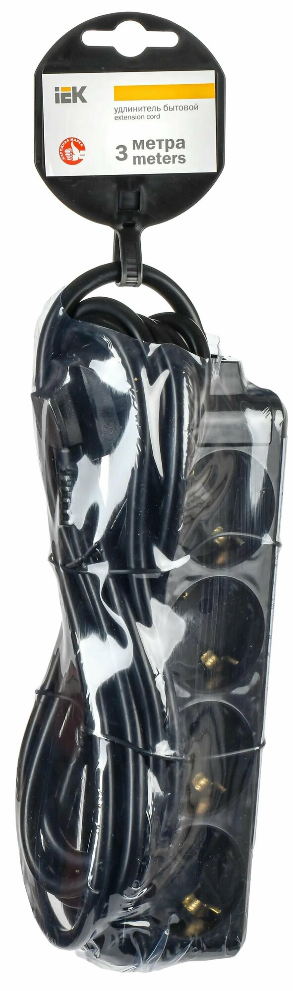 Отзывы на Удлинитель У04 4 места сз 3м 3х1мм2 16А 250В чер., IEK WYP10160403ZK02 (1 шт.)