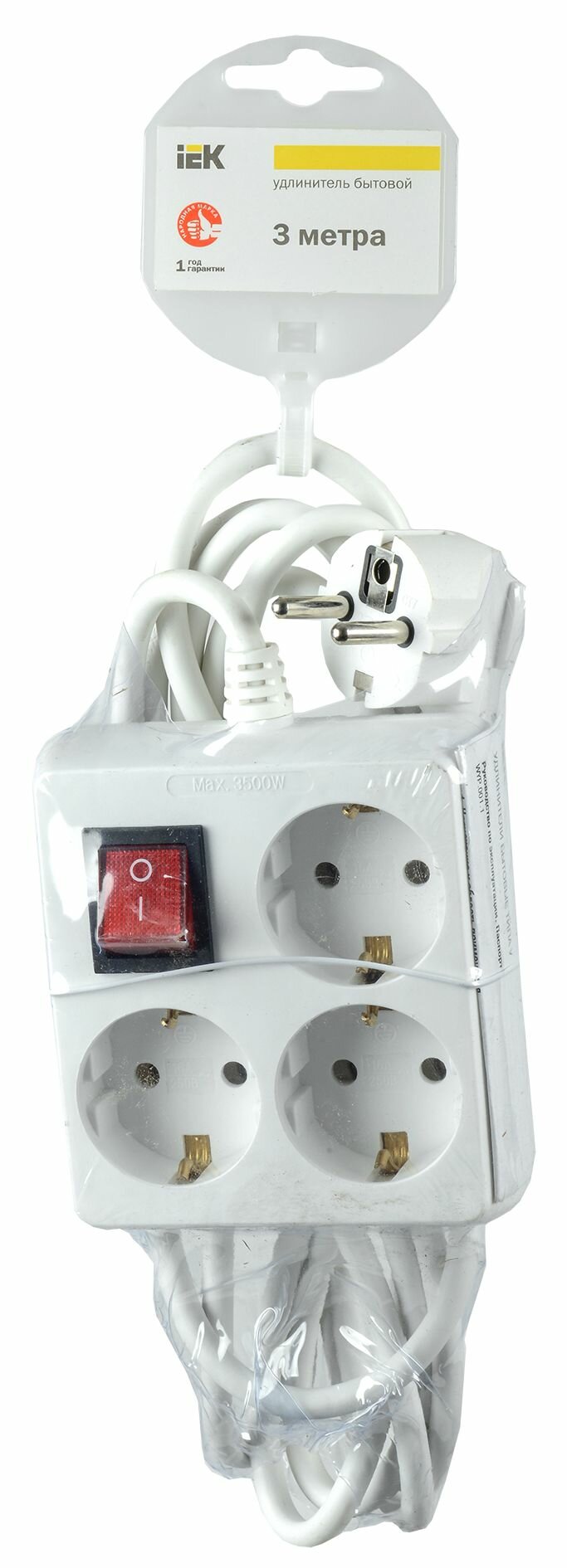 Отзывы на Удлинитель 3 розетки 3 метра с/з 16А ПВС 3х1, с выкл., IEK У-С03К