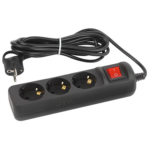 10 цен на Удлинитель электрический UX-3e-5m-B с заземлением 3 розетки 5м ПВС 3х0.75кв.мм 10А черн. Эра Б0057723