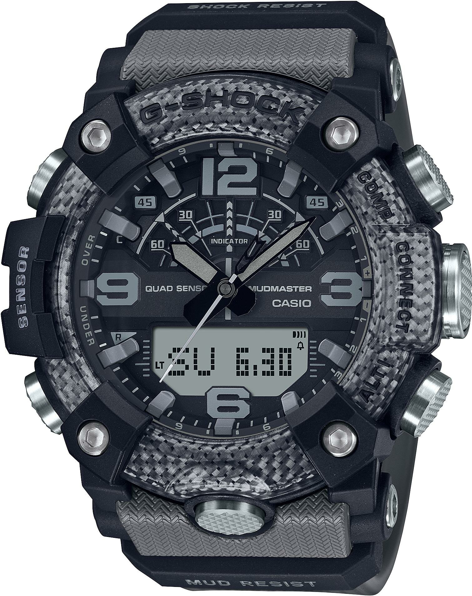 Наручные часы CASIO G-Shock GG-B100-1A мужские, кварцевые, встроенная память, будильник, настройка времени с помощью приложения, хронограф, термометр, шагомер, барометр, компас, альтиметр, секундомер, таймер обратного отсчета, водонепроницаемые, противоуд
