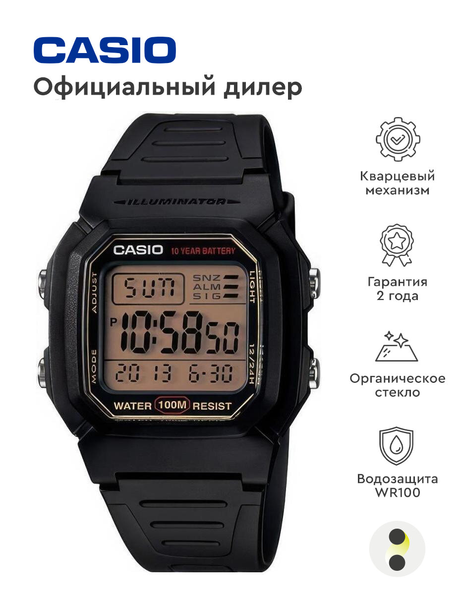 Наручные часы CASIO Collection Men W-800HG-9A кварцевые, будильник, секундомер, подсветка дисплея, водонепроницаемые, черный
