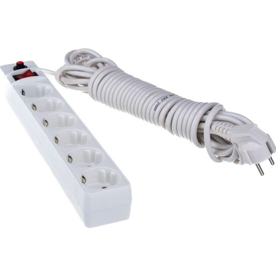 Сетевой фильтр белый, 6 гнезд, 10 метров с выключателем, ПВС 3х0,75, UNIVersal