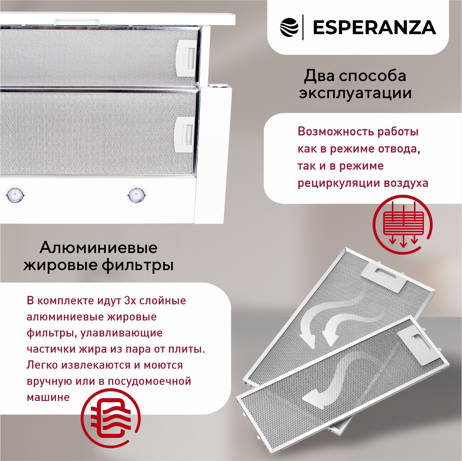 Отзывы на Вытяжка кухонная встраиваемая на 60 см ESPERANZA RHT60S01 W, производительность 450 м3ч, гарантия 5 лет, белый