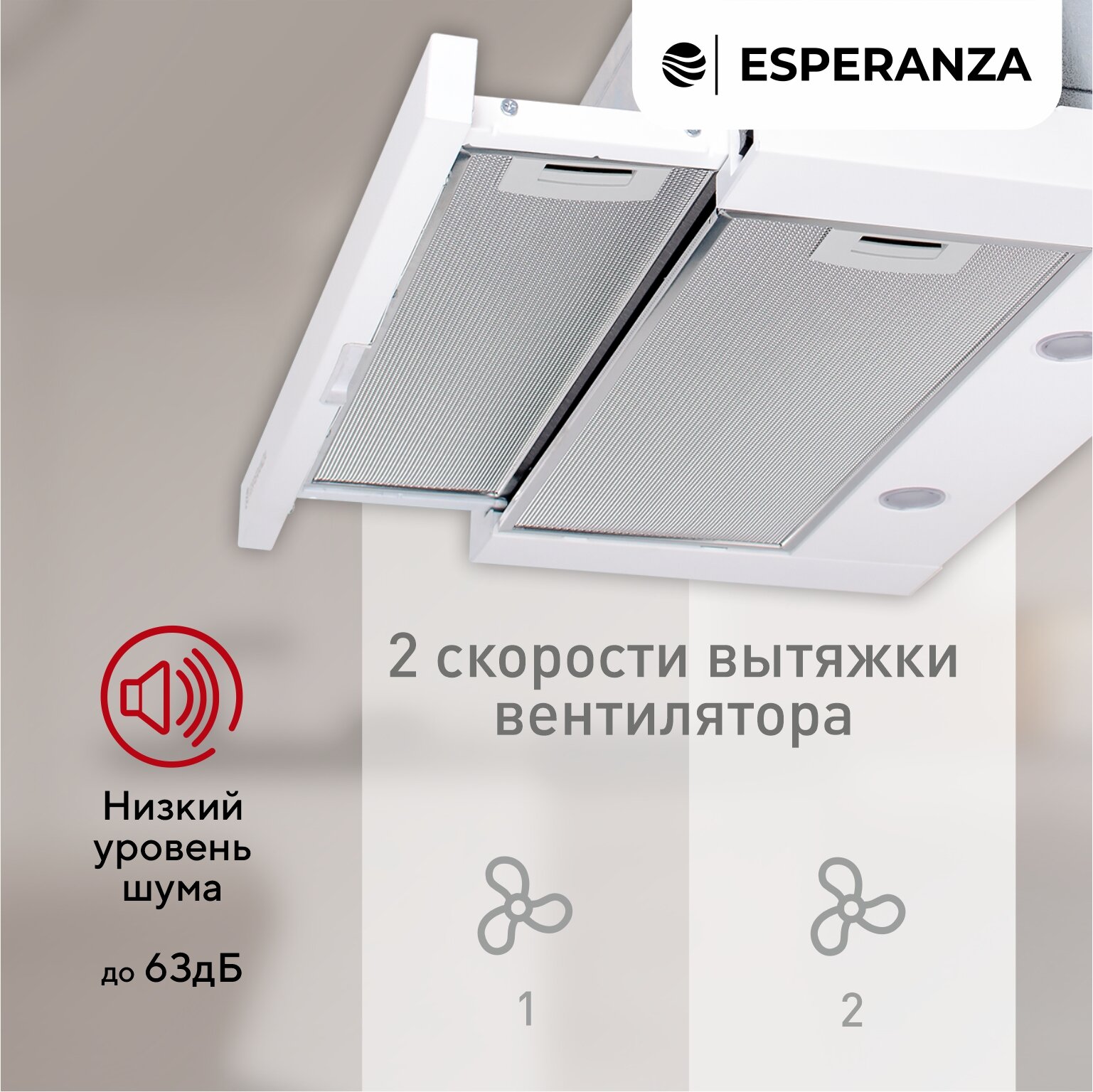 Вытяжка кухонная встраиваемая на 60 см ESPERANZA RHT60S01 W, производительность 450 м3ч, гарантия 5 лет, белый информация: