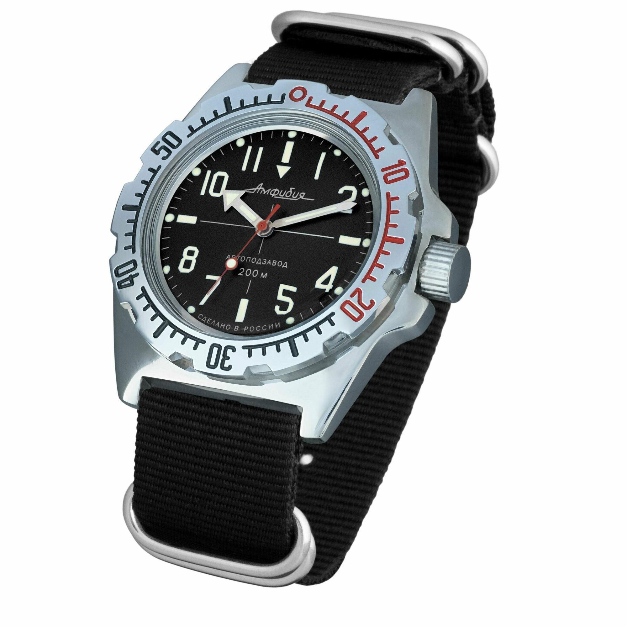 Отзывы на Часы наручные мужские механические с автоподзаводом Восток Амфибия 110647_black, нейлон, черный