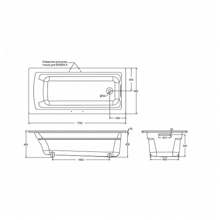 Чугунная ванна Jacob Delafon Archer 170x80 E6D905-0 с антискользящим покрытием информация:
