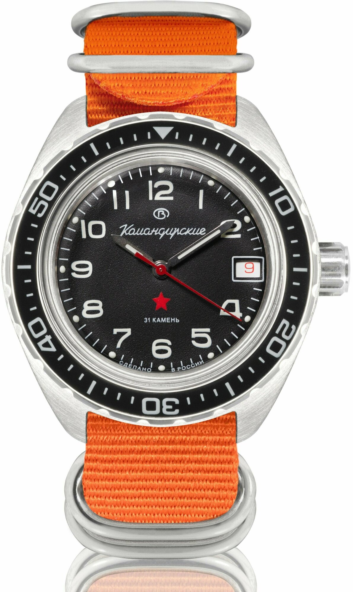 Наручные механические часы с автоподзаводом Восток Командирские 020706 black orange