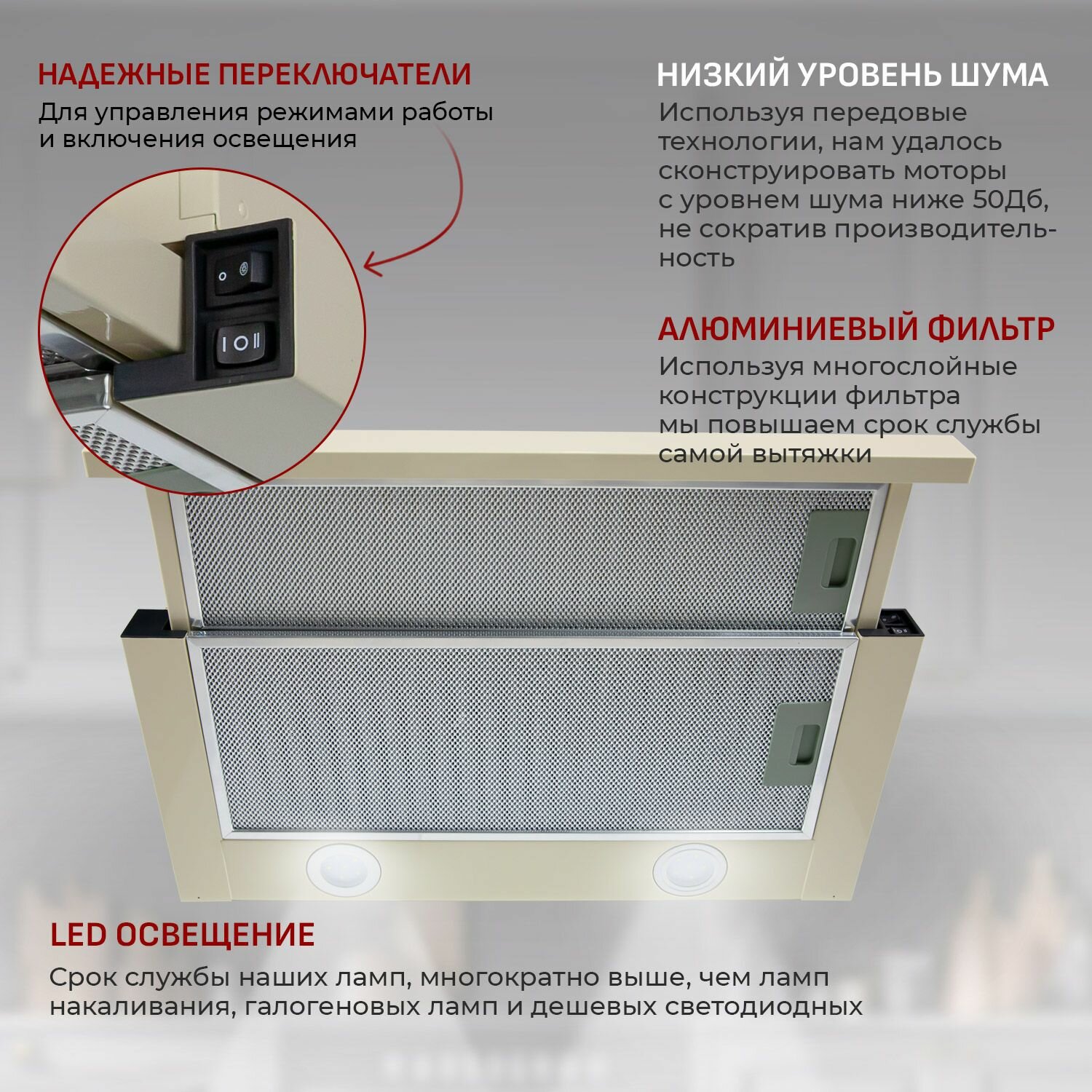 10 цен на Кухонная вытяжка встраиваемая MBS ARALIA 150 IVORY/50 см/производительность 750м3/ч, низкий уровень шума.